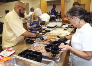 The Tappahannock Rotary Club’s kitchen staff was busy preparing plates during the organization’s annual Pork Feast. Approximately 250 tickets were sold for the event that was held October 23 in the banquet hall of the Tappahannock-Essex Volunteer Fire Department’s Sation I in Tappahannock. From left, Angelo Stevens Jr., Brooke Mullery, and T. Press. The Pork Feast is the organization’s largest annual event. Funds raised go to support a number of charitable endeavors in the community.