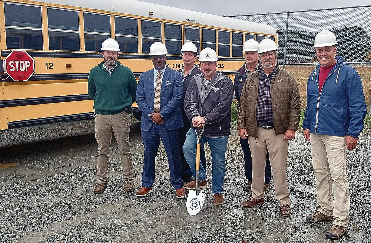 In attendance at last week’s groundbreaking for Essex County’s Joint Vehicle Maintenance Facility were (from left): Jay Mitchell (Joint Operations Manager), Dr. Marvin Jones (Essex Superintendent of Schools), Ronnie Fones (Bus Shop Manager), Rob Akers (Essex Board of Supervisors Chairman), Mike Headley (Bus Shop Mechanic), Edwin “Bud” Smith Jr. (Essex At-Large Supervisor), Scott Croxton (Essex School Board Chairman).