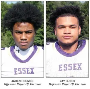 Second team defensive selections from Essex were Taivian Holmes (sown lineman) and sophomores Tim Walker (linebacker), Jaden Holmes (all-purpose) and J.J. Brooks (defensive back).