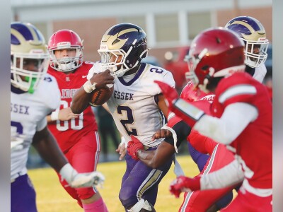 Essex maintained its status as the top rated football team in Region 1A and the top ranked Class 1 team in Virginia following Saturday’s 22-0 victory over Rappahannock. Above, Essex running back Jaden Holmes finds an opening in Rappahannock’s defense en route to a 28- yard touchdown run. See details page B1.